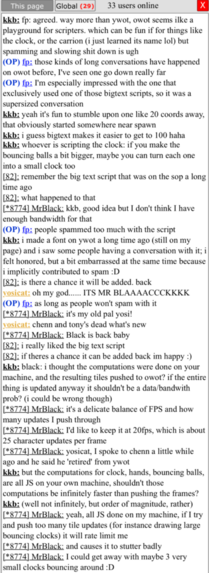 Talking with Banksy about optimizing the script. Archived on /Banksy/b.