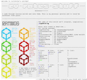 Many users had their own system for rating worlds, most of which come with their own specialized art style.