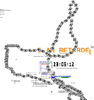 Ran above the [[Center Console]] for a few hours on February 24th, 2026, briefly making for three clocks at Spawn (counting the [[SOP Clock|oldest clock]] and a new one that had appeared the day prior). This clock used the same font as Mr. Black's scrolling text script. | |||