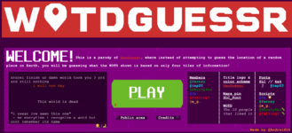 /wotdguessr is a world created by AndreiXYZ(along with a team of collaborators) in 2023. It is a quiz featuring all 116 WoTDs that have been chosen at the time of its creation.